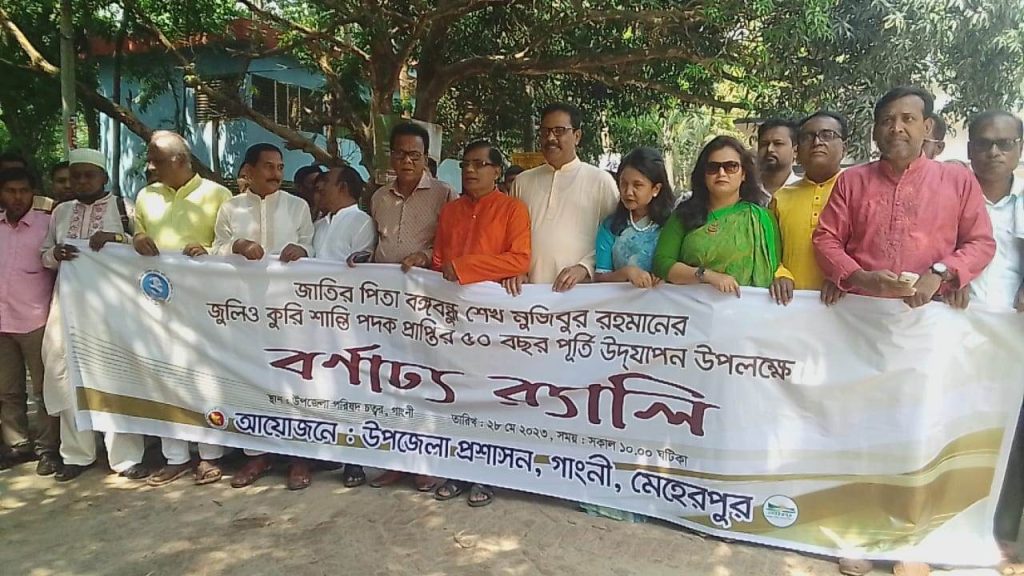 গাংনীতে বঙ্গবন্ধুর শান্তি পদক ‘ জুলিও কুরি’ পদক ৫০ বছর পূর্তি উপলক্ষে র‍্যালী ও আলোচনা সভা