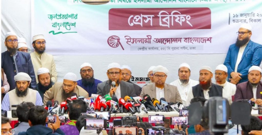 শুক্রবার (১৬ জানুয়ারি) বিকালে রাজধানীর পুরানা পল্টনে ইসলামী আন্দোলনের কেন্দ্রীয় কার্যালয়ে এক সংবাদ সম্মেলনে জামায়াতের জোটে না যাওয়ার ঘোষণা দেন ইসলামী আন্দোলনের যুগ্ম মহাসচিব ও মুখপাত্র গাজী আতাউর রহমান। এ সময় তিনি এ আহ্বান জানান।