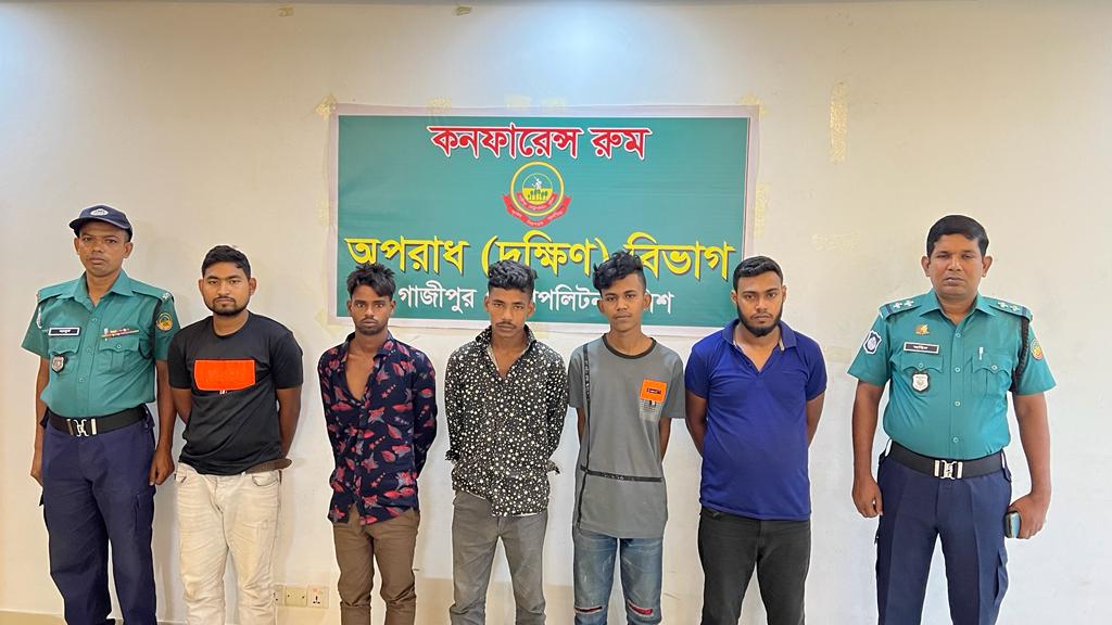 গ্রেফতারকৃতরা হলেন, সোহেল মিয়া(২২), জুনায়েদ হোসেন জুনু(১৯), হৃদয় (২১), রাসেল ওরফে বাবু (২৬) ও রোমান (১৮)।