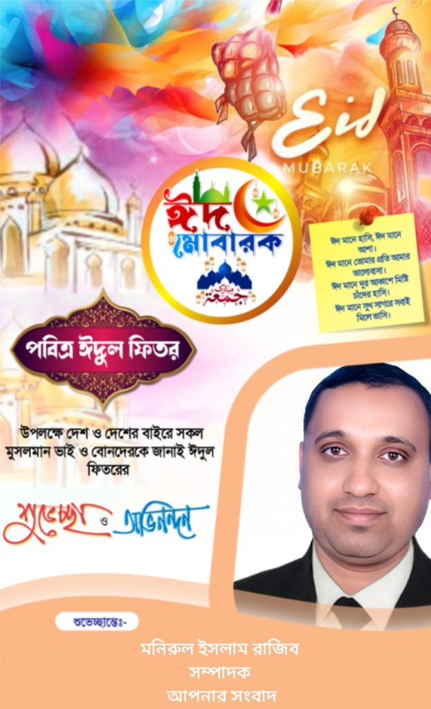 মনিরুল ইসলাম রাজিব সম্পাদক: আপনার সংবাদ পত্রিকা সবাইকে পবিত্র ঈদুল ফিতরের শুভেচ্ছা জানিয়েছেন।