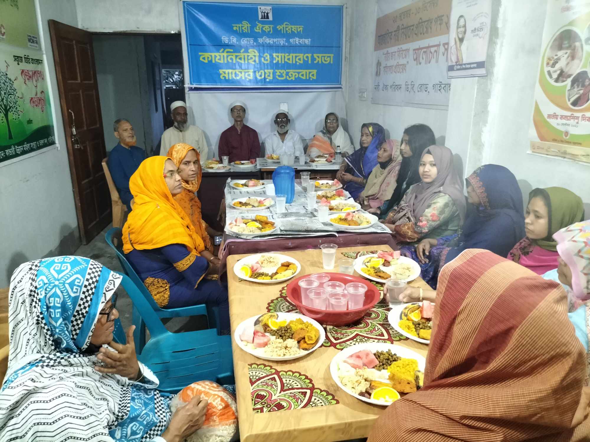 নারী ঐক্য পরিষদের উদ্যোগে ইফতার মাহফিল ও সুবিধাবঞ্চিতদের মাঝে ঈদ উপহার বিতরণ