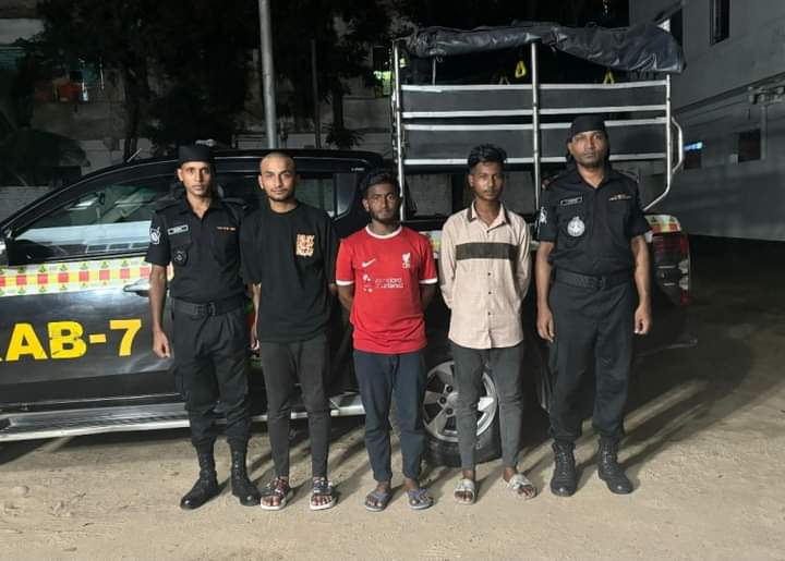 ফেনীতে ডাকাতির প্রস্তুতিকালে কিশোর গ্যাংয়ের পিকে গ্রুপের প্রধান মো. সোহেলসহ ৩ জন সক্রিয় সদস্যকে ধারালো অস্ত্রসহ গ্রেপ্তার করেছে র‌্যাব-৭।