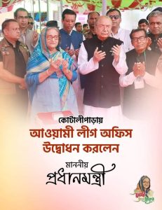 স্টাফ রিপোর্টার : গোপালগঞ্জের কোটালীপাড়া উপজেলা আওয়ামী লীগ কার্যালয়ের উদ্বোধন করেছেন আওয়ামী লীগ সভানেত্রী ও প্রধানমন্ত্রী শেখ হাসিনা। উদ্বোধন শেষে