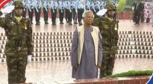 স্টাফ রিপোর্টার : জাতীয় স্মৃতিসৌধে গিয়ে মহান মুক্তিযুদ্ধে শহীদদের প্রতি শ্রদ্ধা জানালেন অন্তর্বর্তীকালীন সরকারের প্রধান উপদেষ্টা প্রফেসর ড. মুহাম্মদ ইউনূস।