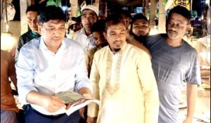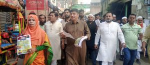 বৃষ্টিতে ভিজে গণসংযোগ করলেন সরকার জাবেদ আহমেদ সুমন